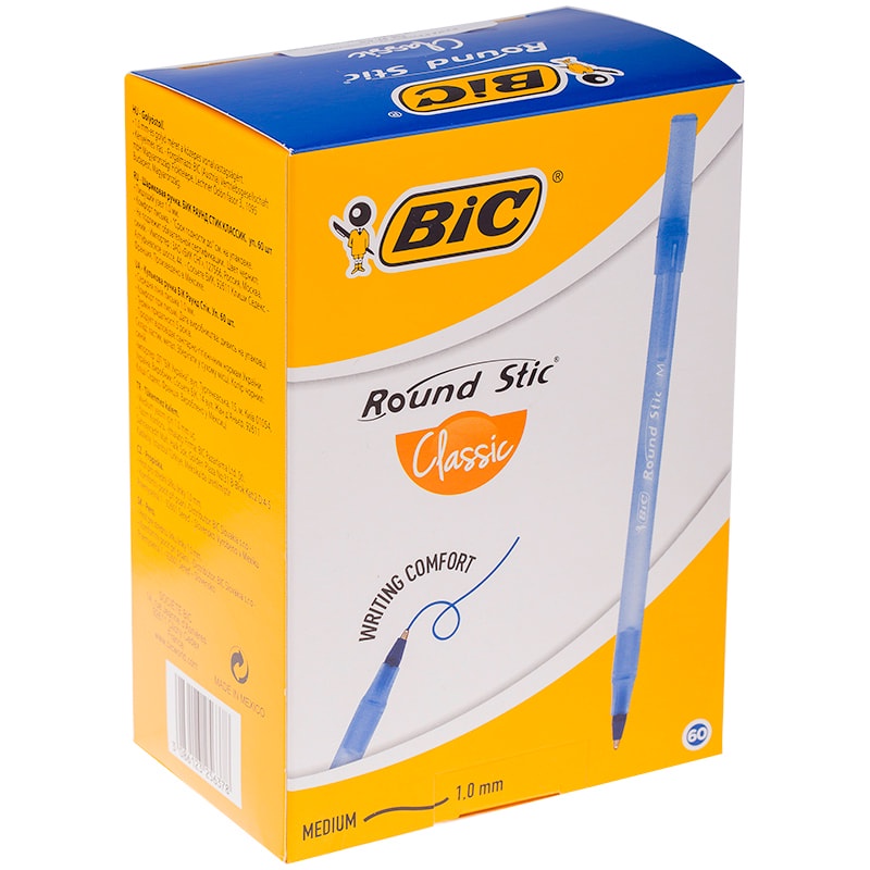 Ручка шариковая Bic Round Stic 921403. Шариковая неавтоматическая: Толщина линии 0,4 мм. Диаметр шарика: 1 мм. Цвет чернил: синий, выполнена в тонированном полупрозрачном корпусе синего цвета. Одноразовая ручка. Торговая марка: BIC. 440317