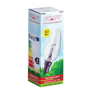 Лампа накаливания Старт, свеча прозрачная, 60 Вт, цоколь E14 132487