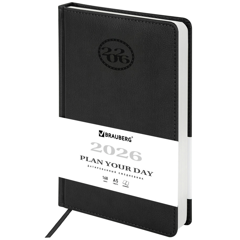 Ежедневник датированный 2026, А5, 138x213 мм, BRAUBERG "Favorite", под кожу, черный, 11703…