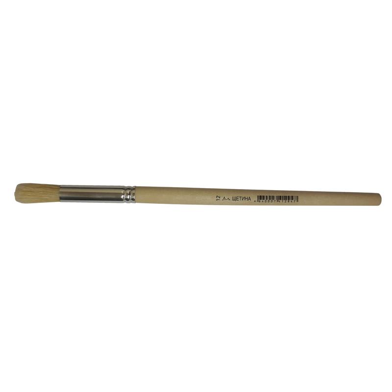 Кисть № 1 School щетина круглая № 12. Жесткая щетина отличается прочностью и упругостью, хорошо наполняется и удерживает краску. Кисть имеет длинную (25 см), деревянную ручку. Кисть предназначена для работ с маслом, тушью.