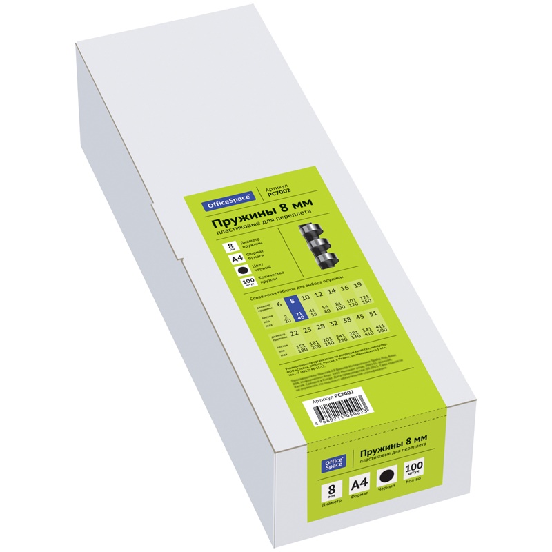 Пружины для переплета пластиковые OfficeSpace PC7000, 8мм белые 100шт