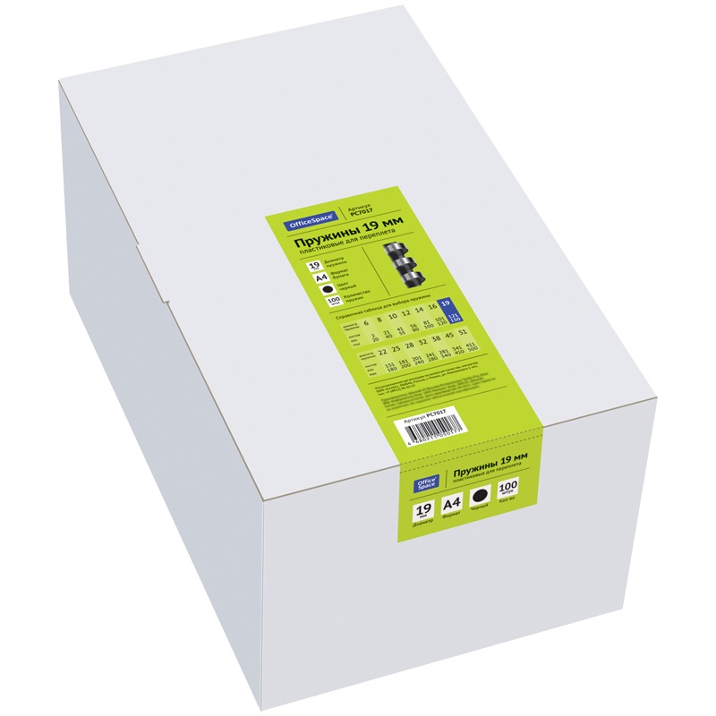 Пружины для переплета пластиковые OfficeSpace PC7015, 19мм белые 100шт
