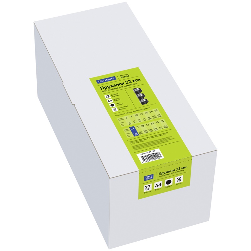 Пружины для переплета пластиковые OfficeSpace PC7020, 22мм черные 50шт