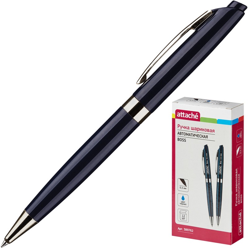 Ручка шариковая автоматическая Attache Boss, синий корпус, синяя, 0,5 мм