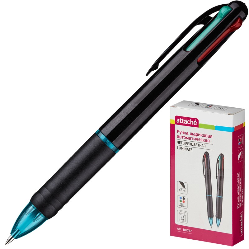 Ручка шариковая автоматическая четырехцветная Attache Luminate, 0.7 мм