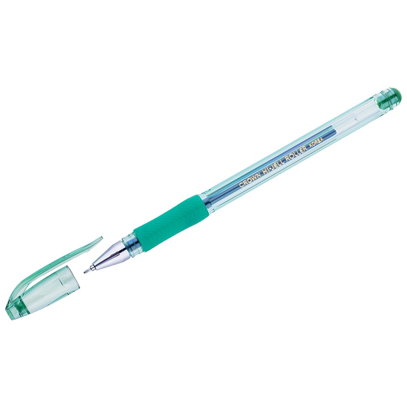 Ручка гелевая Crown "Hi-Jell Needle Grip" зеленая, 0,7мм, грип, игольчатый стержень, штрих…