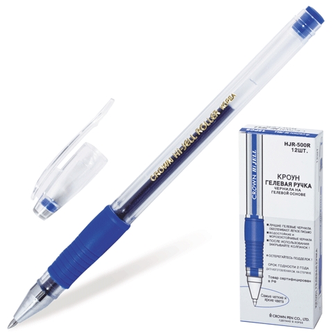 Ручка гелевая Crown HJR-500R, с резиновой манжетой, синяя, 0,5 мм